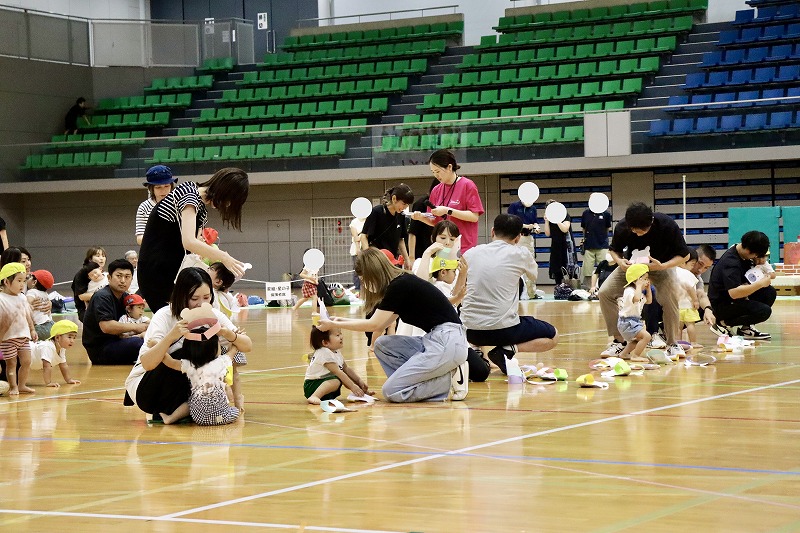 絵本「しろくまのパンツ」をモチーフにした競技で、子ども達がかわいいしろくまさんに変身していました✨みんなお着替え頑張ったね🤗