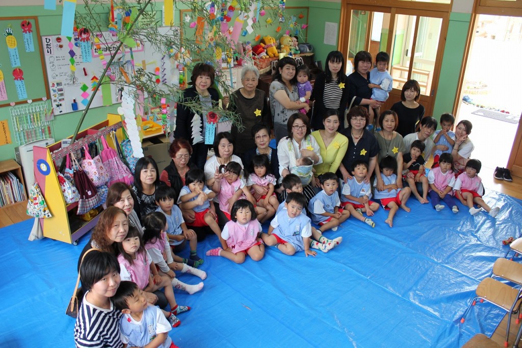最後は完成した七夕飾りの前で、「たなばたさま」のお歌をうたって