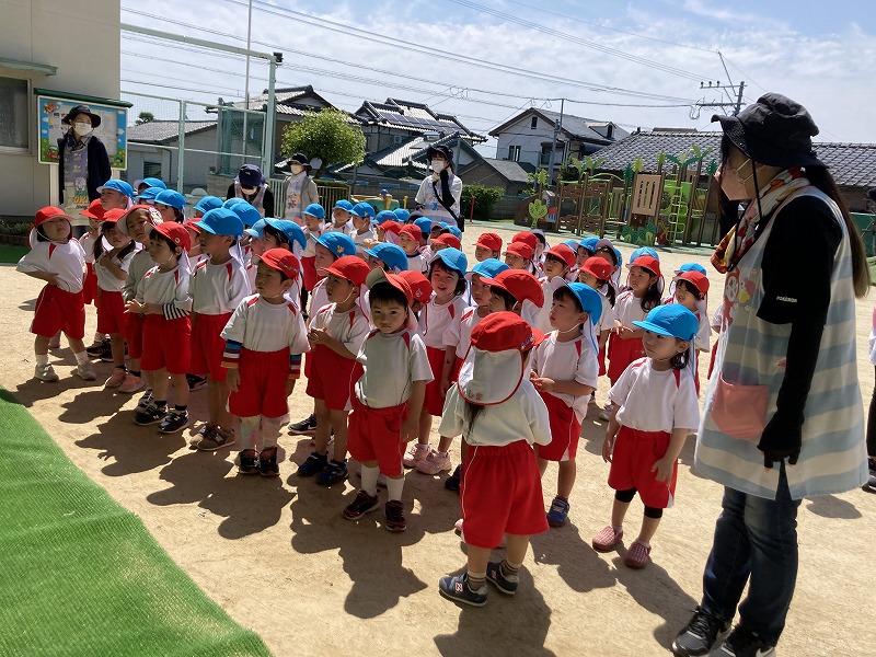 幼稚園のできごと / 2022.5.235月17日(火)に日組さんと星組さんで園周りのお散歩に行きました。星組さんは初めてのお散歩だったので、日組さんと手を繋いで歩く練習をしました(*^_^*)