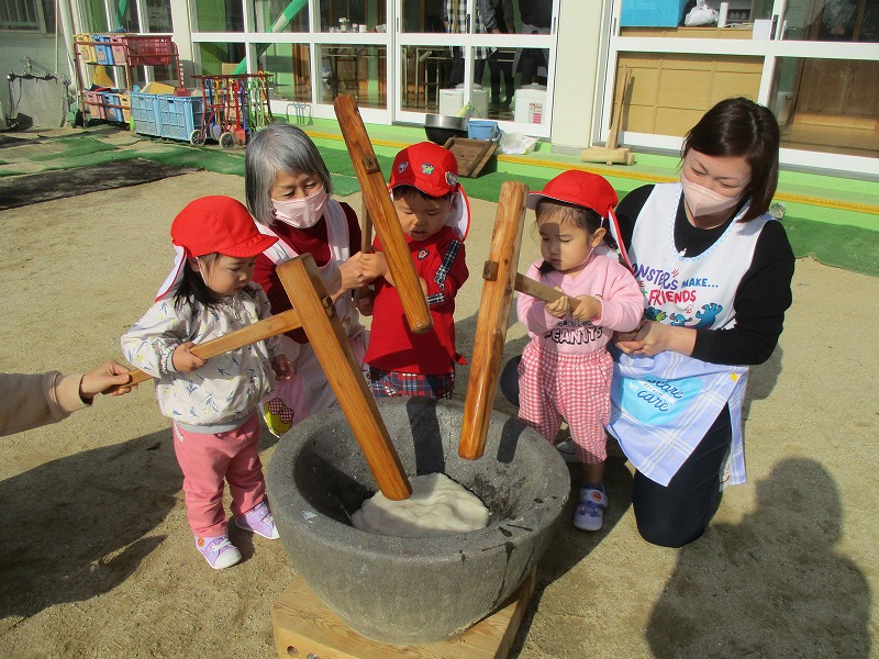 しっかり杵を持って『1・2・3!』の掛け声で頑張りました(*^^*)