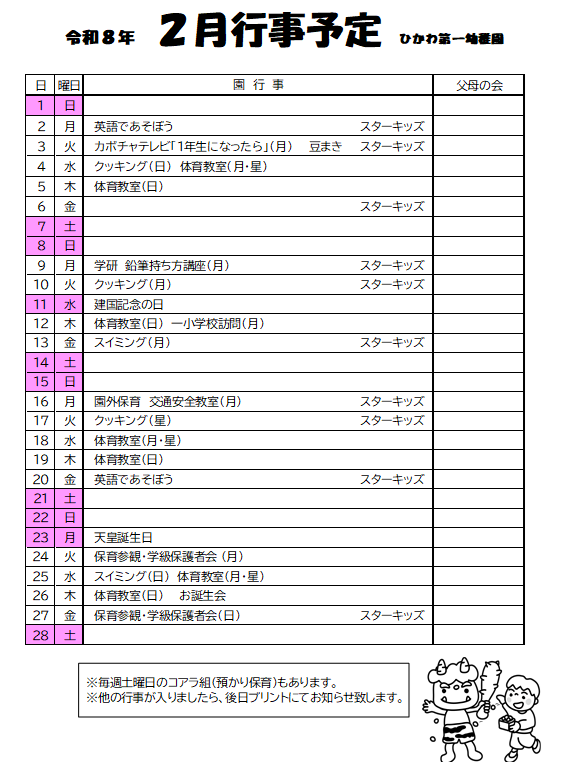 今月の予定 / 2026.2.25