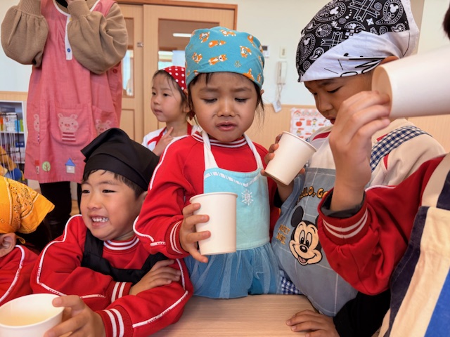 昆布出汁、かつお出汁、にぼし出汁の3種類を飲み比べた子ども達からは