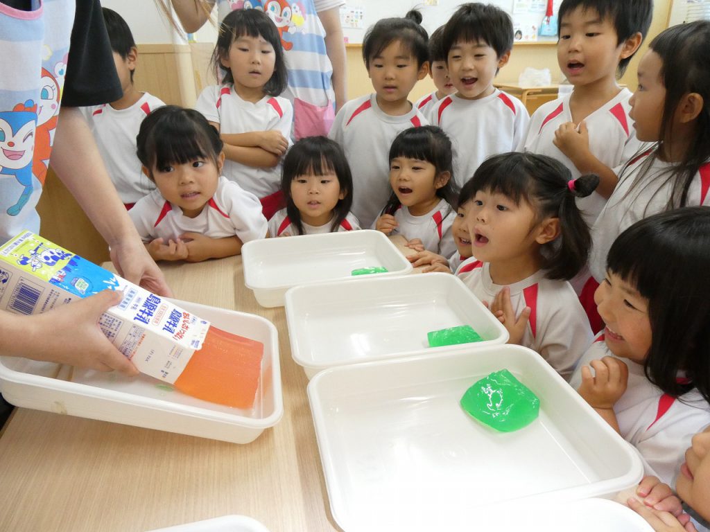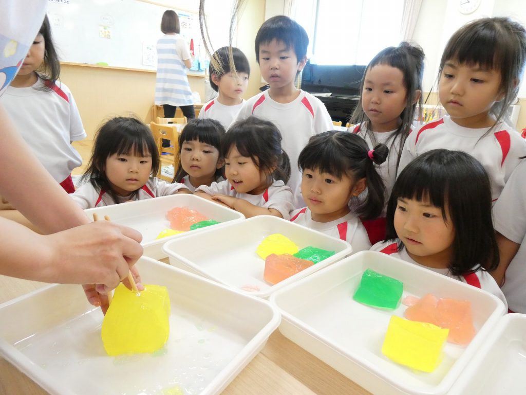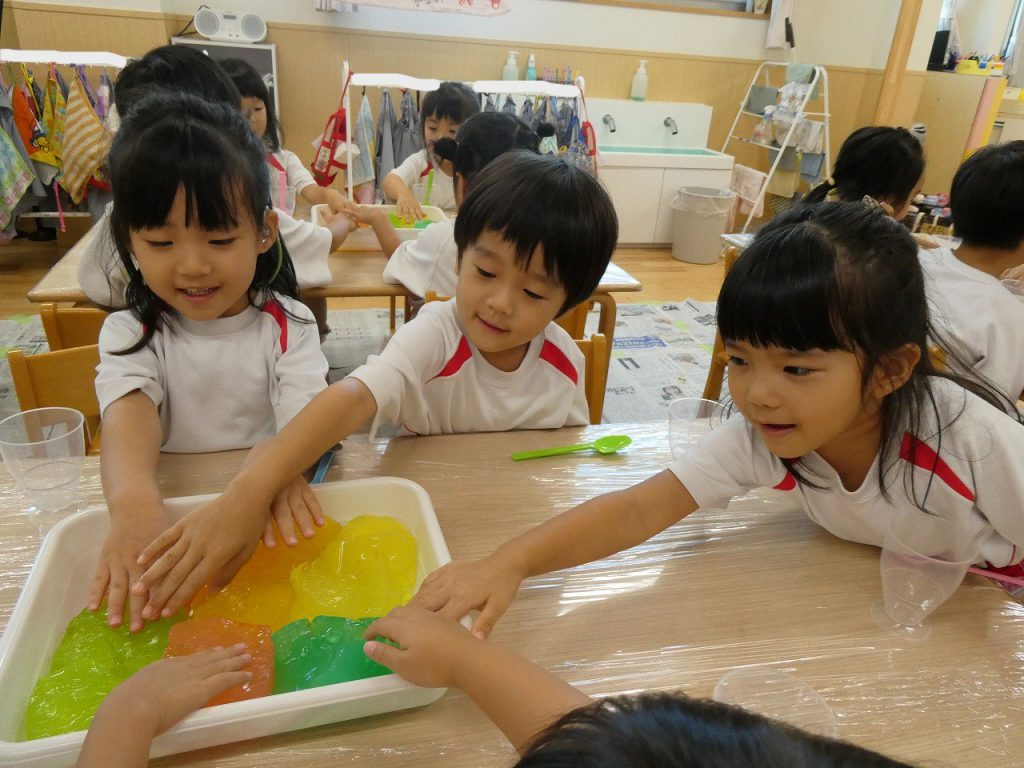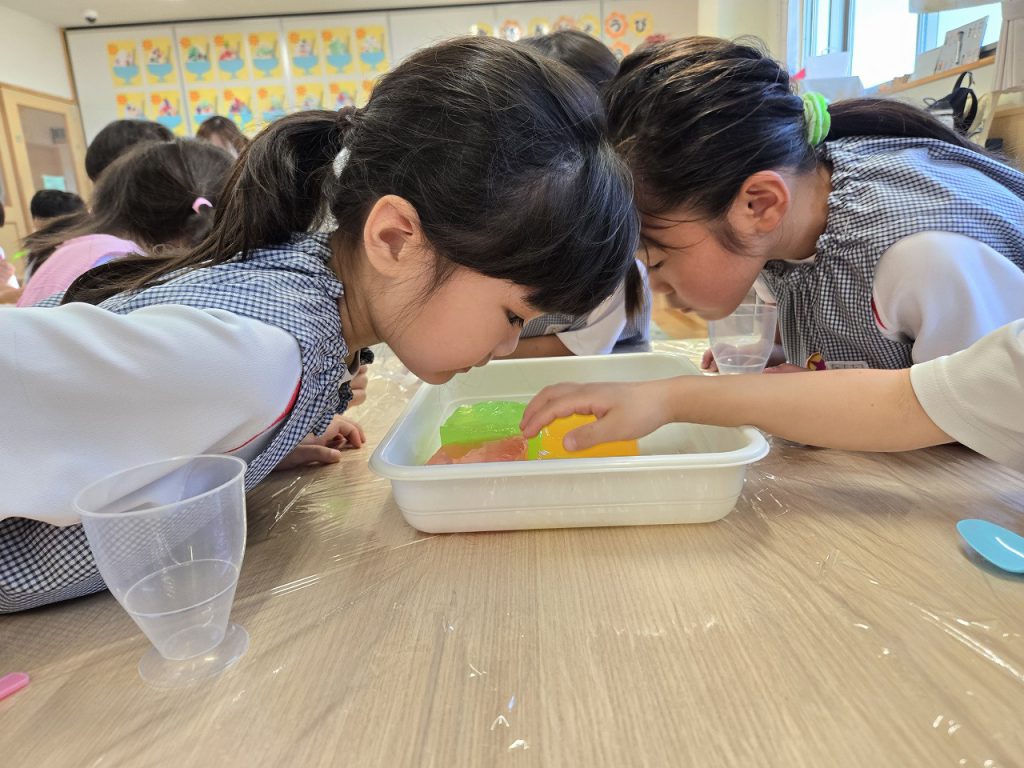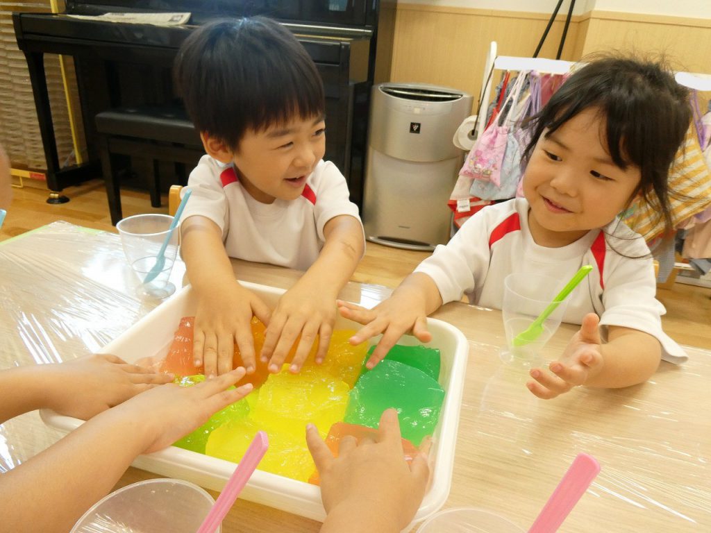 室内で楽しく過ごすため、学年ごとに分かれて寒天遊びをしました✨