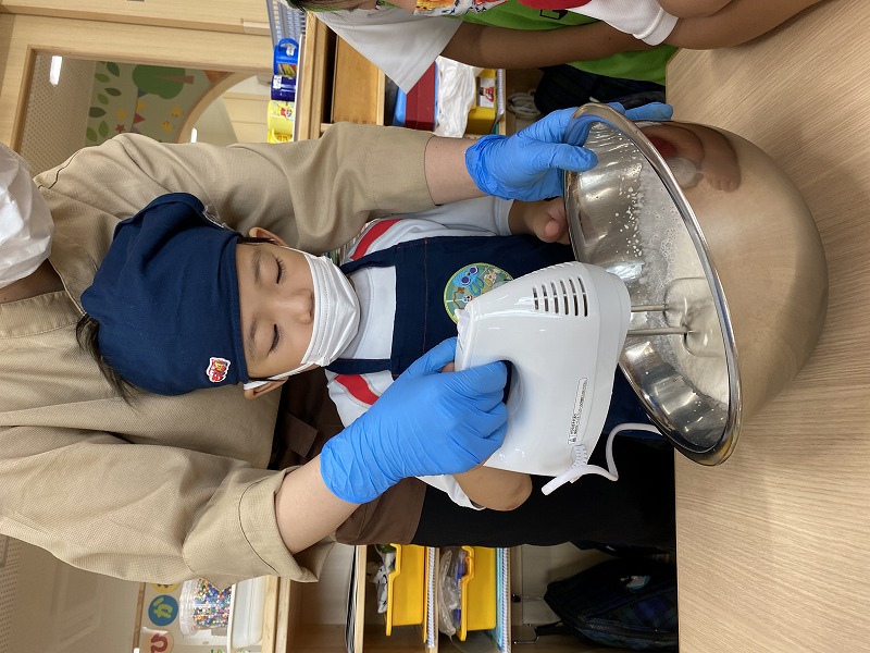 クッキングの前にお買い物ごっこがあり、お店屋さんになりきった子ども達。