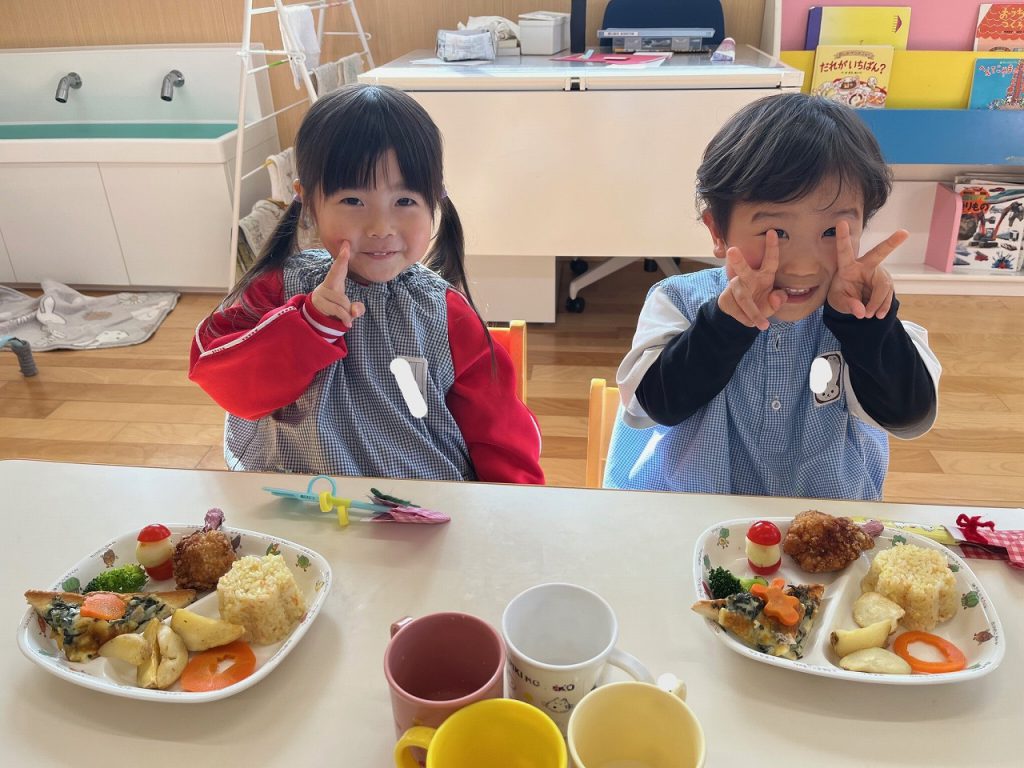 今日の給食は形からも楽しんでほしいという想いで作りました☆彡喜んでくれたかな?みんなおかわり分も完食です(^^♪ 明日は子どもたちが楽しみにしている園外保育の日。晴れますように☆彡