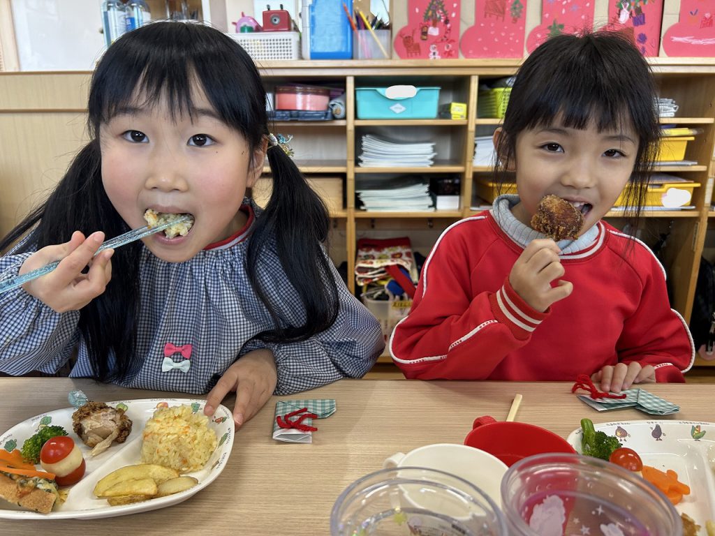 食育(給食&クッキング) / 2026.1.5年末年始はいかがお過ごしでしたか?朝から子どもたちの元気な声が聞こえてきて、お休みだった幼稚園にもまた賑やかな日が戻ってきました(*^^*)今年も子どもたちがやさしく、たくましく、考えて行動できるように栄養面でサポートしていきます。どうぞよろしくお願いします