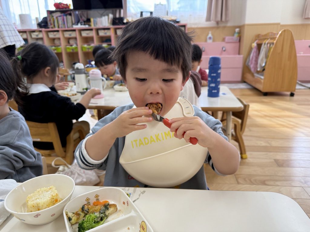月組・日組・星組のお友だちも大きいお口をあけてお肉やお野菜を頬張っていましたよ(*^^*)