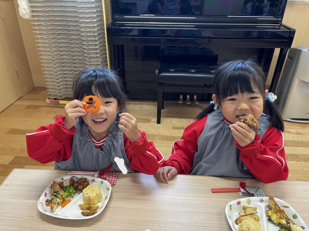 食育(給食&クッキング) / 2025.10.3010/30(木)明日は園外保育・愛情弁当の日のため、今日はハロウィン行事食をしました(*^^*)