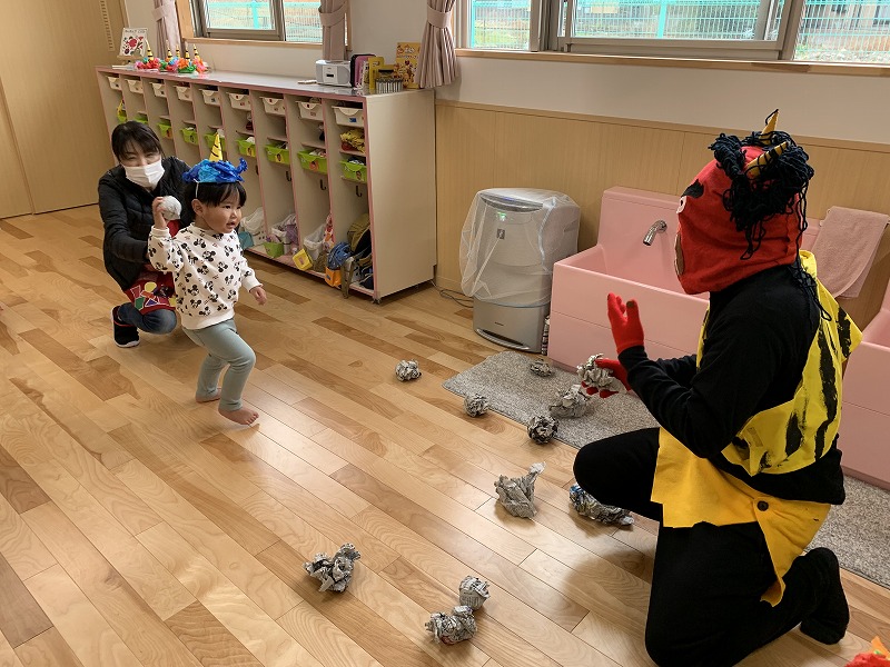 ひかわ幼稚園では一日早くおともだちと一緒に恵方巻を食べました。