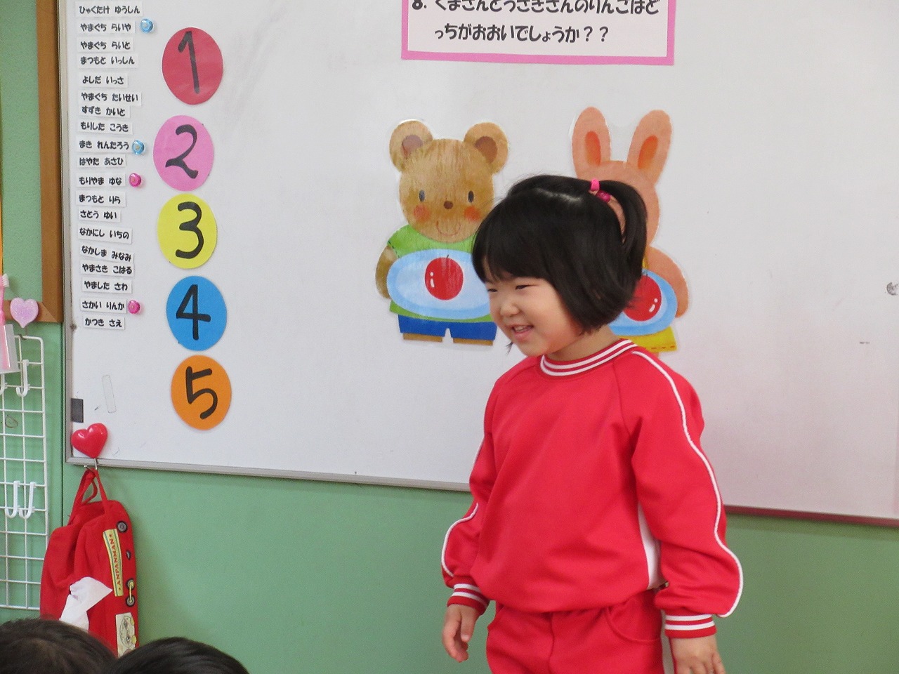 「はーい!」と元気いっぱいに手をあげ、大きな声で上手に発表することができました!
