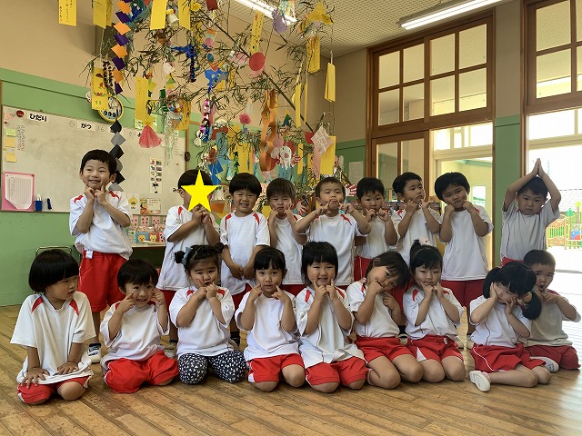 毎年、祖父母の皆さまをお招きして七夕飾り作りから飾りつけまでを行っていましたが、今年度はコロナウイルスの影響により、子どもたちだけでの行うことになりました。