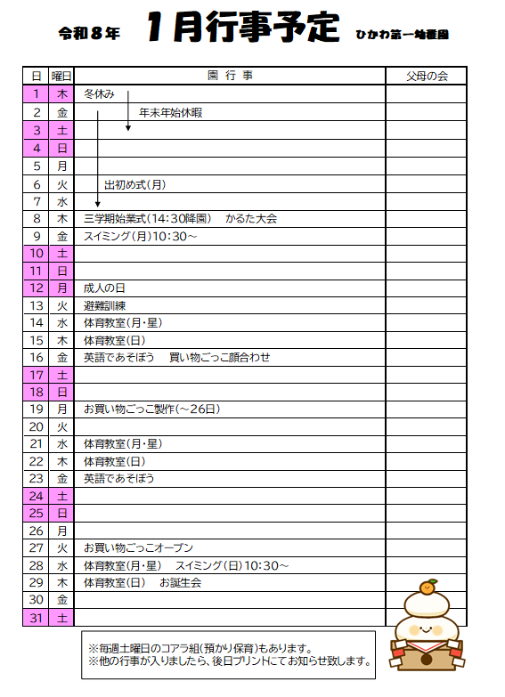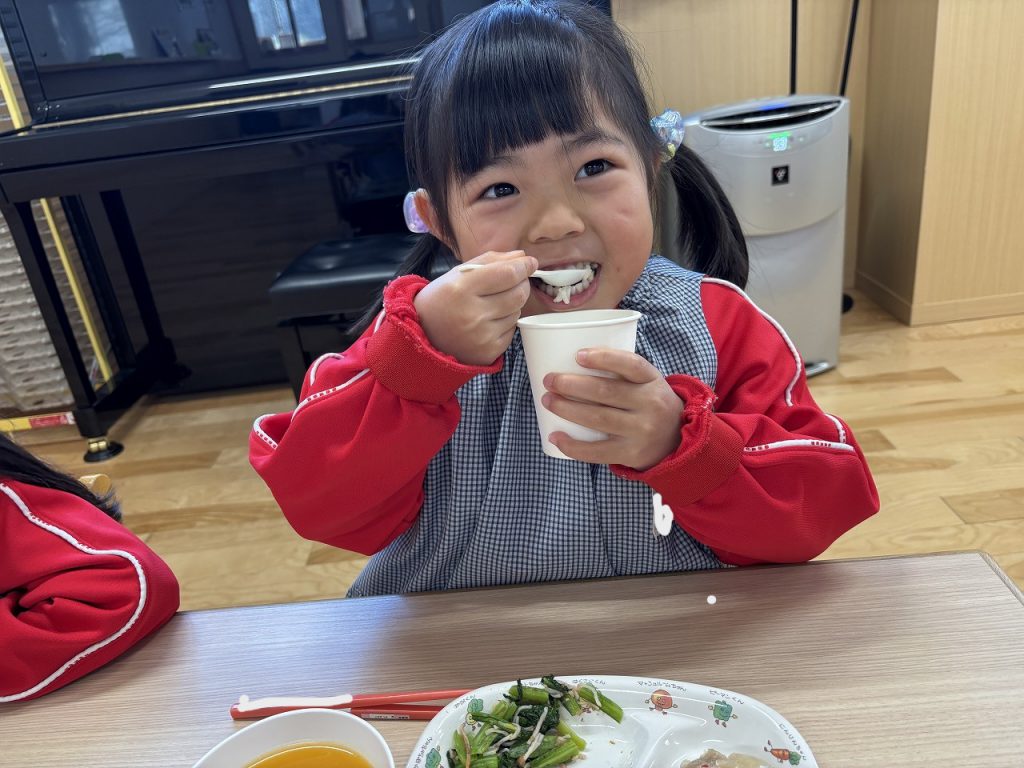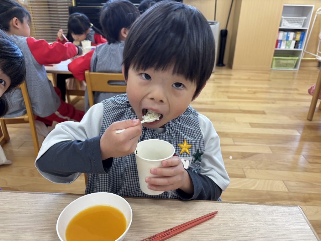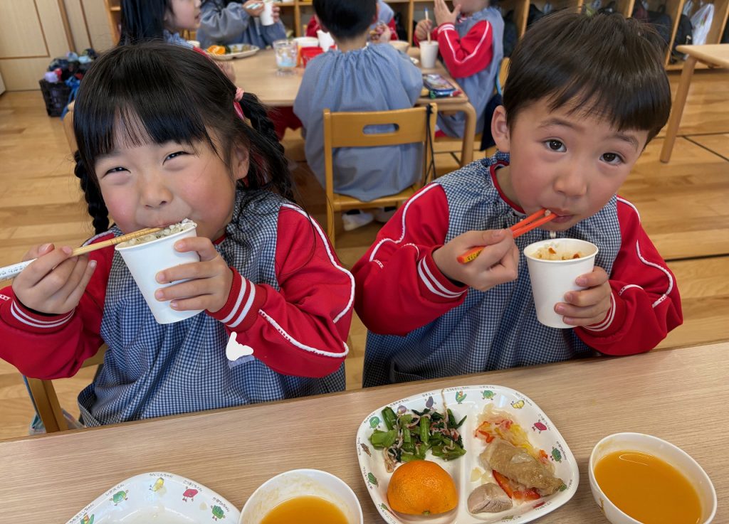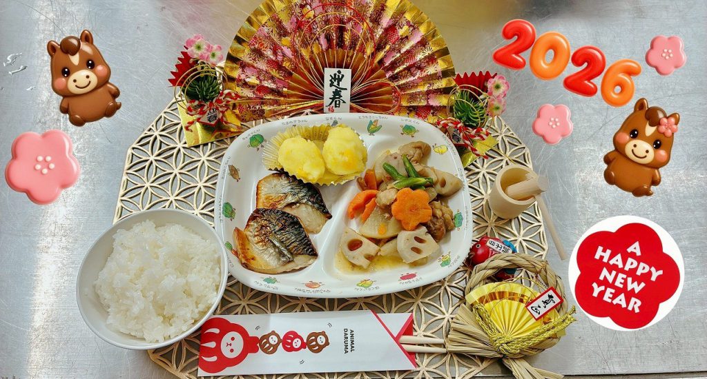 食育(給食&クッキング) / 2026.1.5年末年始はいかがお過ごしでしたか?朝から子どもたちの元気な声が聞こえてきて、お休みだった幼稚園にもまた賑やかな日が戻ってきました(*^^*)今年も子どもたちがやさしく、たくましく、考えて行動できるように栄養面でサポートしていきます。どうぞよろしくお願いします