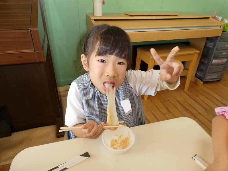 砂糖醤油ときなこをつけて、つきたてのお餅はもちもちでとっても美味しかったね💕