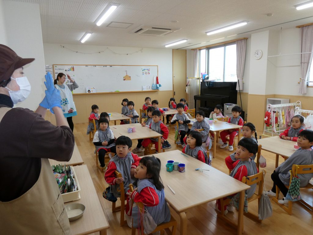 給食食べれないの?と不安になる子どもたちもいました。でもひかわ幼稚園には❝もしも❞のために備えて災害用の非常食を備えているよということもお話しました!(^^)!