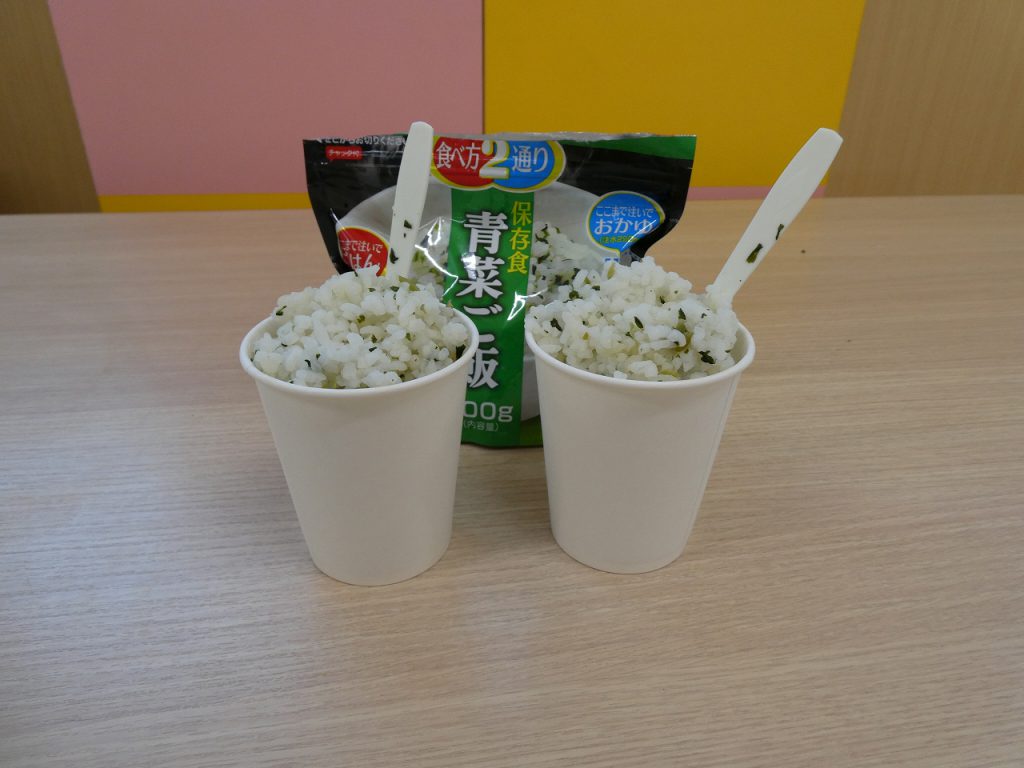 いつも食べている普通のお米と非常用のアルファ米を見比べながら違いに気付く様子も見られました。