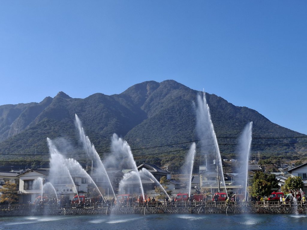 宣言した後は、消防パレードです!放水訓練もありました⛲