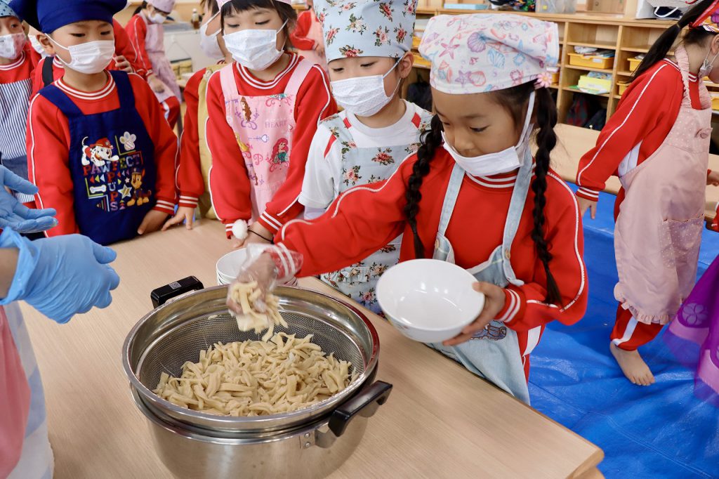 幼稚園のできごと / 2026.3.9月組最後のクッキングは、『うどん』を作りました🍜