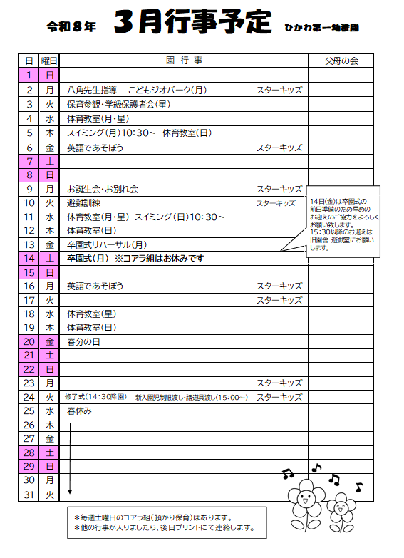 幼稚園のできごと / 2026.3.233月14日(土)にひかわ幼稚園を卒園する月組さんのお別れ会がありました🌟