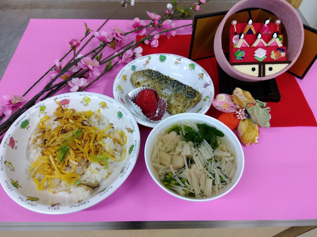食育(給食&クッキング) / 2026.3.33月3日(火)今日は雛祭り(桃の節句)の日ですね。ひかわ幼稚園では玄関前に大きな雛人形を飾って女の子の健やかな成長と幸せを願いました(*^^*)